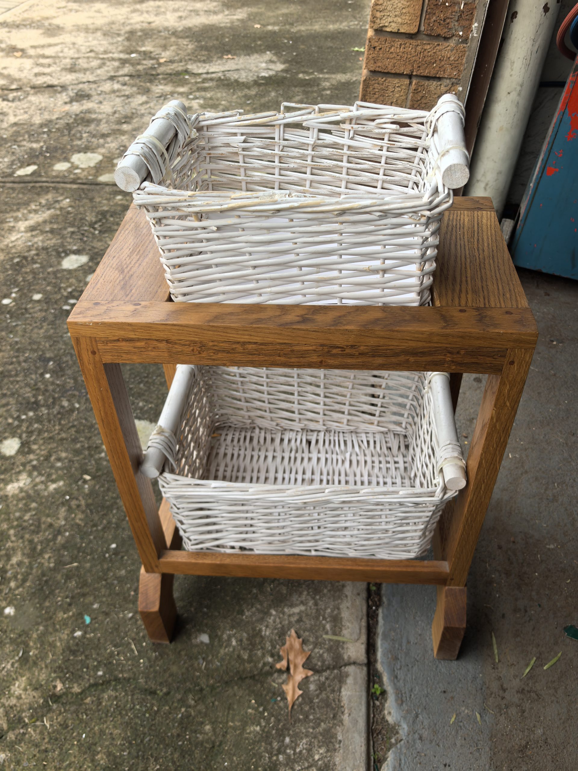 Wooden stand with 2 baskets. Good condition. Price R300
